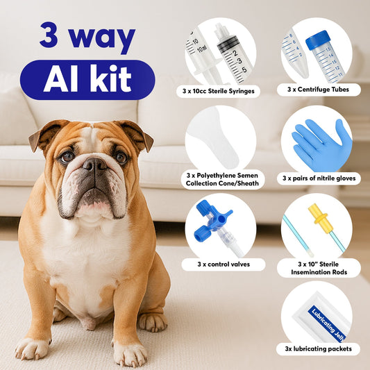 3-Way Canine Breeding Kit – Complete Set for Semen Collection and Insemination with Collection Cones, Insemination Rods, Syringes, Tubes, Gloves, Valves & Lubricating Jelly