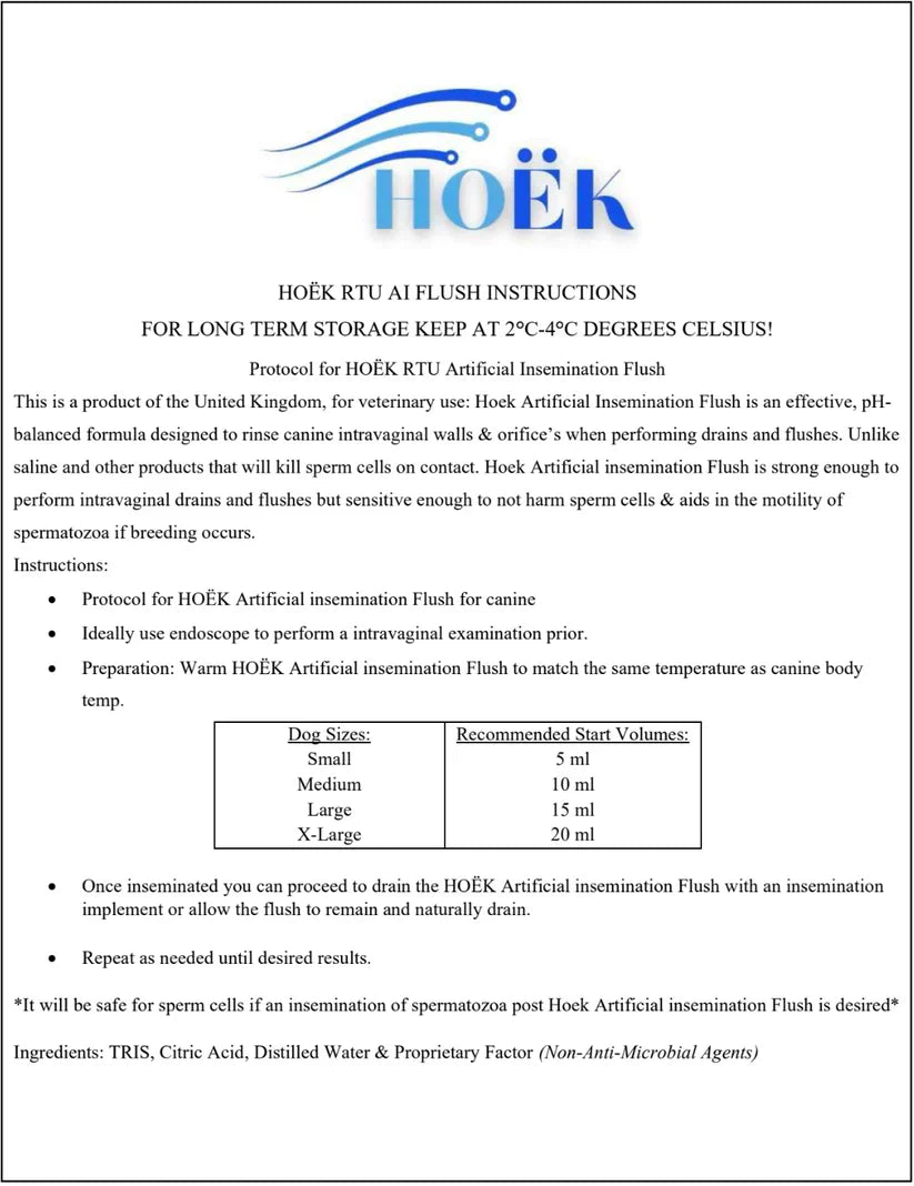 Hoek Artificial insemination canine Flush INSTRUCTIONS!