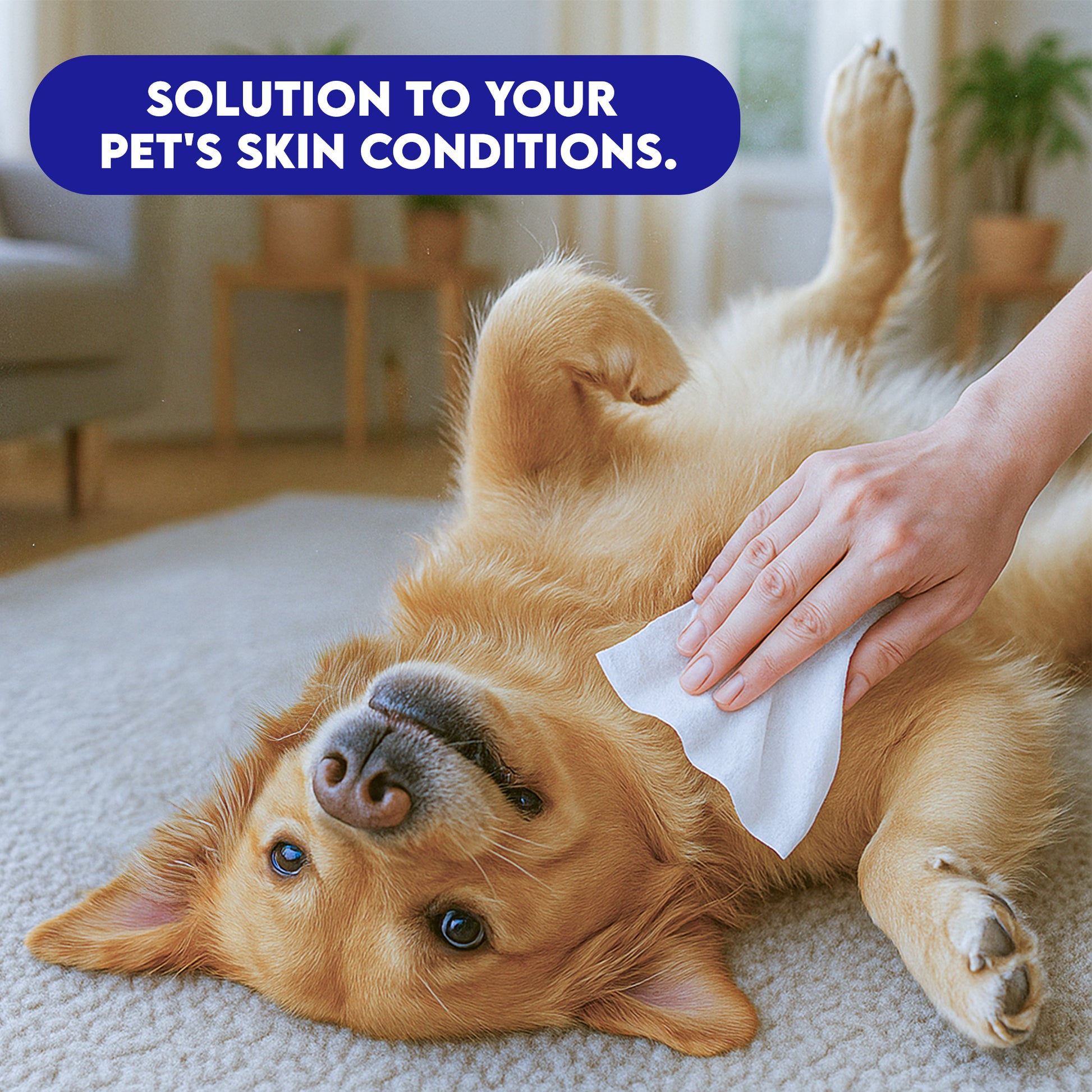 Topical Wipes contain a solution for the cleansing of dog and cat skin and coat. Topical Wipes can be used for the cleansing of face folds, finger folds, underarm, and groin areas.